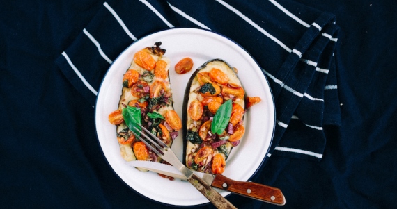 4. One-Pan Baked Eggplant Bruschetta