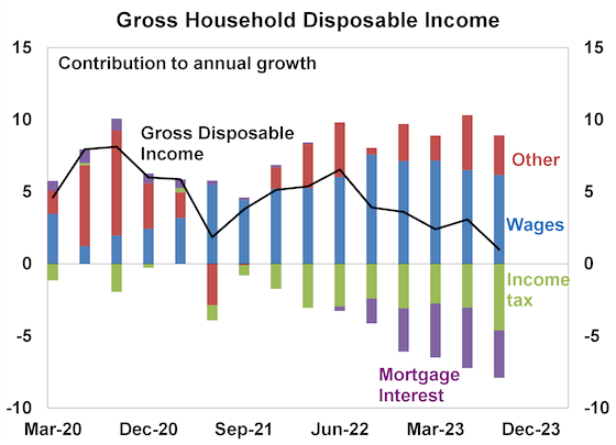 – An increasing income tax burden and mortgage repayments have weighed on income growth, despite solid wages and salaries.