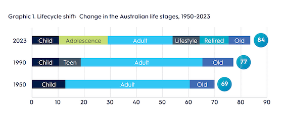 Changing Australian life stages, 1950 – 2023
