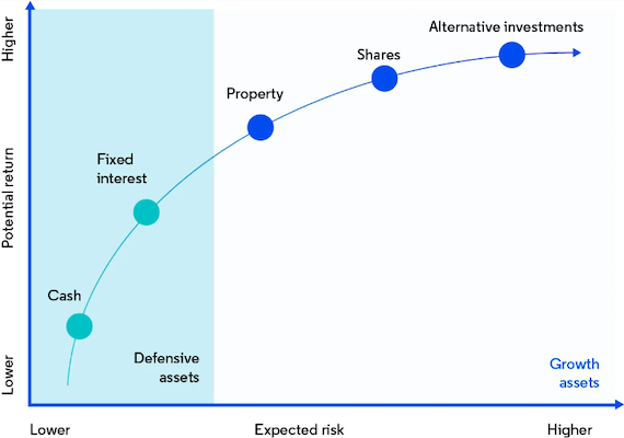 For longer-term goals, investments with higher returns such as shares and property, can be better. These investments are higher risk but you’re investing long term, so you can ride out any short-term falls in value.