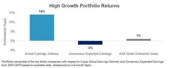 The research we have undertaken into small cap returns and our experience in the market shows that earnings drive share prices. Valuation is an important consideration, however it is mean reverting and hard to predict, so we focus on our core strength – forecasting earnings. An earnings-based approach to valuing a stock is resilient to valuation changes and its serially correlated nature makes it more predictable.