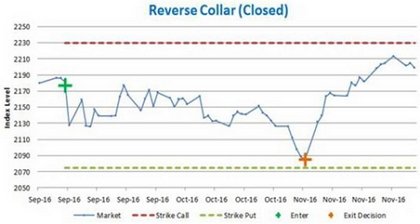 *A reverse collar is selling (short/writing) a put option and buying (long) the call option on the same index. At the same time, to cover any negative market movement and therefore the short put, we sell the same face value of the contracts short, with futures contracts in the S&P500 market.