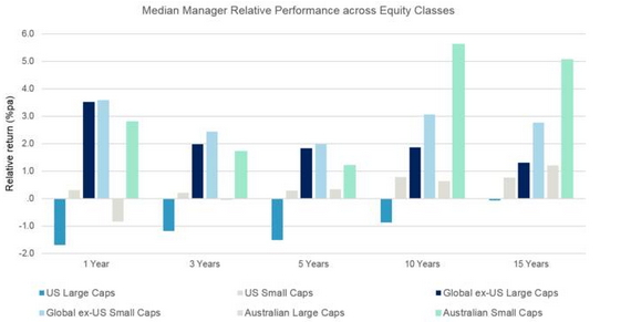 The ability for investment managers to beat their respective benchmark performance (commonly known as relative return or alpha) in niche markets like Australian small caps has been consistent and has delivered significantly higher alpha as compared to other equity classes over the long-term (over 10 to 15 year periods).