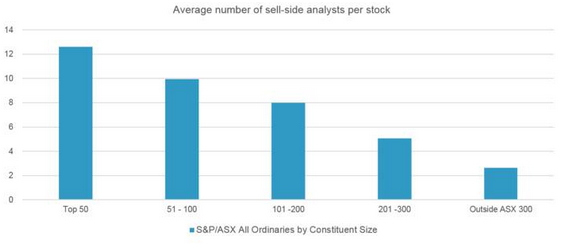 • Sell-side analyst coverage drops off down the market capitalisation spectrum, notably outside the S&P/ASX 100 Index (see chart below)