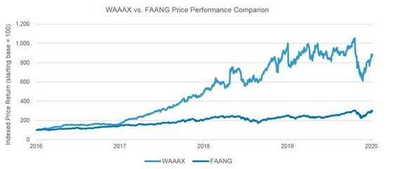 We see Australian small caps offering investors early-stage exposure to many of these emerging thematics that can deliver super-normal returns. A recent example is the recent strong performance of a cohort of ASX listed technology companies known as the WAAAX stocks (Wisetech, Afterpay, Altium, Appen and Xero). These companies started off as Australian small caps and many have since migrated to being large caps. The WAAAX stocks have delivered stellar returns which are well in excess of the FAANG stocks (the five prominent American technology companies being Facebook, Amazon, Apple, Netflix and Alphabet – formerly known as Google).