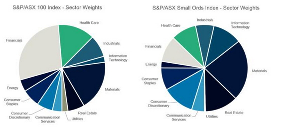 As compared to the Australian large cap market, the small caps market offers investors a greater level of sector diversification and idiosyncratic exposures. The small cap market offers a more balanced exposure to industries when compared to the large cap market which is heavily weighted towards the Financials sector.