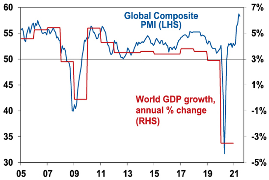 First, while coronavirus cases may be on the rise again the vaccines are keeping a light shining at the end of the tunnel. They don’t appear to be completely effective against getting infected by the new variants, but the evidence suggests they are 90%+ effective in preventing serious illness requiring hospitalisation and causing death. In the countries that are further advanced in vaccination (eg, Israel, the UK, most of the US, Europe, etc.) this should allow reopening to continue without rising new cases overwhelming the hospital system, ie, learning to live with coronavirus. For those countries further behind in reaching herd immunity – like Australia – it likely means a continuing reliance on snap lockdowns to keep case numbers down and head off bigger outbreaks that overwhelm the hospital system and send economies backwards. But the evidence so far is that snap lockdowns don’t derail the recovery. And global production schedules point to plenty of vaccines being available later this year enabling Australia and other vaccine laggards to proceed down the same path as other advanced countries later this year or early next in terms of avoiding lockdowns.
