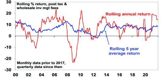 Despite a wall of worry with coronavirus and inflation, 2021 was a great year for diversified investors, with average balanced growth super funds looking like they have returned around 14%, after just 3.6% in 2020. Balanced growth super fund returns have averaged around 8.5%pa over the last five years, well above inflation and bank deposit rates.