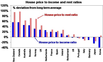 The ratios of house prices to incomes and rents relative to their long-term averages are at the high end of OECD countries.
