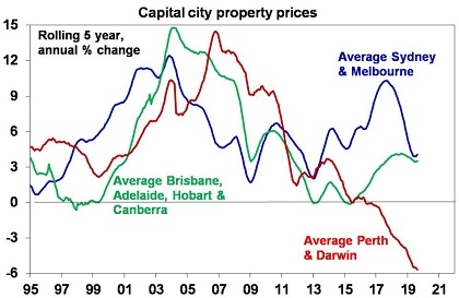 Over long periods of time residential property provides a similar return to shares (at around 11% pa) but it offers good diversification as it performs well at different times to shares so it has a role to play in investors’ portfolios. The pull back in prices in several cities in the last few years provides opportunities for investors, but just bear in mind that rental yields remain relatively low in Sydney and Melbourne and be wary of areas where there is still a lot of new units to hit. There is probably better value to be found in regional centres and Perth, and Brisbane looks attractive in offering reasonable yields, a low vacancy rate and improving population growth.