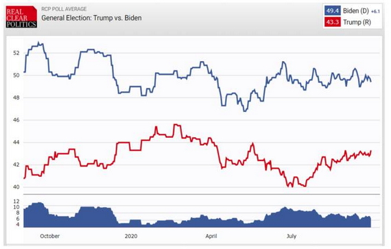 The ‘Predict It’ betting market has Biden with a 17 point lead but has a Democrat clean sweep (where it wins the presidency, House and Senate) at around 50/50. The Democrats already have control of the House and are likely to retain that, but they need three seats with the Vice President, to gain a majority in the Senate. A clean sweep would remove the Senate as a blockage to higher taxes.
