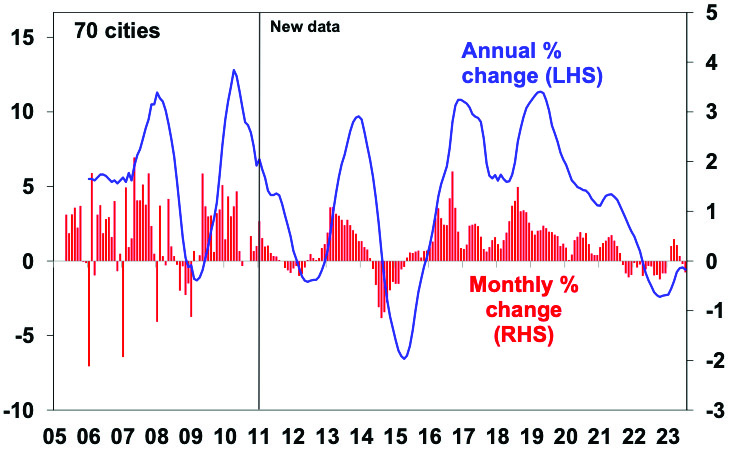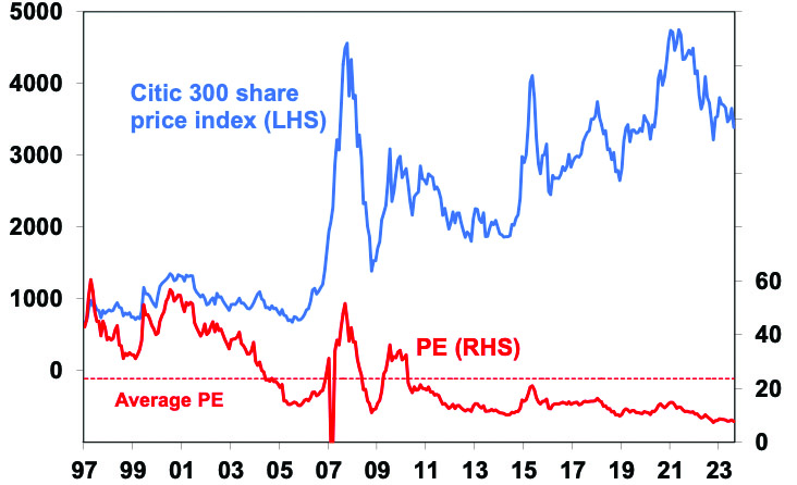 The collapse in the share of Australian goods exports going to China in 2021 and 2022 from around 42% to less than 30% (partly due to trade restrictions) without a major hit to our economy highlights that maybe Australia is not as dependent on China as many think. Nevertheless, a sharp downturn in China would be a double whammy for the Australian economy coming at the same time the lagged impact of big interest rate hikes on household spending comes through. But while it’s a risk it’s not our base case as ultimately we expect a ramp up in Chinese stimulus measures enabling Chinese growth to settle around 5% this year and 4.5% next year (not great compared to the past experience for China but not a disaster). However, the risks around the Chinese outlook and its longer-term growth mean Australia cannot rely on the China/commodity boom indefinitely driving national income and hence masking our poor productivity performance. This is another reason why Australia needs structural reform to boost our longer-term growth potential.