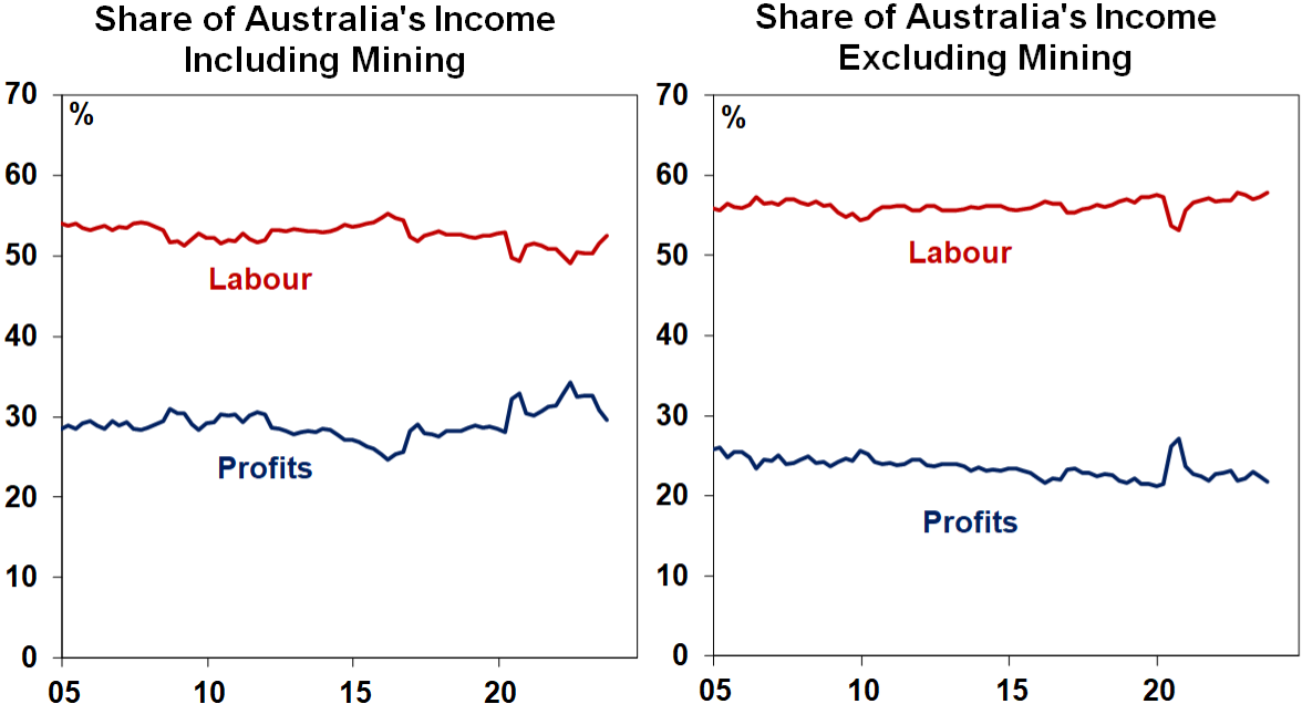 There has been some concern that the surge in prices is due to “price gouging” with “billion-dollar profits” cited as evidence. In fact, the Australian Government has set up an inquiry into supermarket pricing. There are several points to note in relation to this. First, it’s perfectly normal for any business to respond to an increase in demand relative to supply by raising prices. Even workers do this (eg, asking for a pay rise and leaving if they don’t get one when they are getting lots of calls from head-hunters). It’s the way the price mechanism works in allocating scarce resources. Second, national accounts data don’t show any underlying surge in the profit share of national income, outside of the mining sector. Finally, blaming either business or labour (with wages growth picking up) risks focussing on the symptoms of high inflation not the fundamental cause which was the pandemic driven policy stimulus & supply disruption. This is not to say that corporate competition can’t be improved.