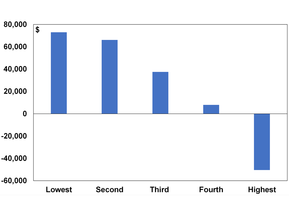 As a result, the Australian individual tax system is highly progressive and this is reflected in the fact that the top 3.6% of tax payers earning more than $180,000 pay around 32% of income tax and the top 10% pay nearly 50% of income tax. ABS data also indicates that only the top 20% of income earners pay more tax than they receive in government transfers. This is likely working against Australia’s long-term interest to the extent that it discourages work effort and hence productivity.