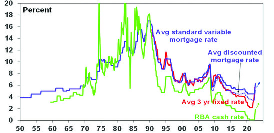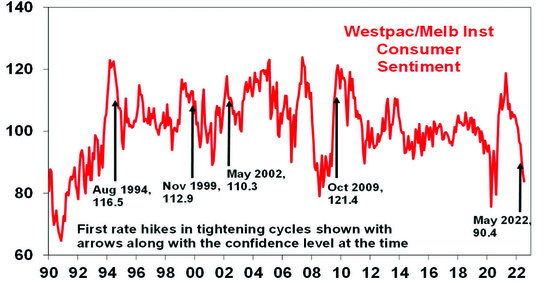 The RBA’s rapid rate hikes reflect a desire to bring demand back into line with constrained supply and to contain inflation expectations by reinforcing its commitment to its inflation target. Containing inflation expectations is critical as the 1960s and 1970s experience tells us the longer high inflation persists the more inflation expectations will rise and get built into price and wage setting making it even harder to get inflation back down.