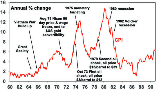 The 1970s experience warns it’s in investors long term interest to get inflation under control even if it involves a bit of short term pain. For investment markets high inflation is bad as it means: