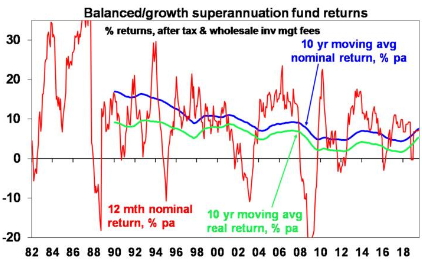 The past 10 years have seen pretty good returns for well-diversified investors. The median balanced growth superannuation fund returned 7.3% pa over the five years to July and 8.2% pa over 10 years and that’s after fees and taxes. This is impressive given that inflation has been around 2%.