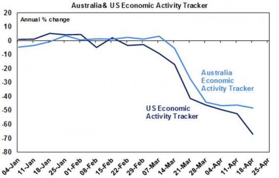 • Economic activity data is literally falling off a cliff. This was highlighted last week by the IMF’s forecast for a contraction in the global economy of 3% this year and in advanced economies of around 6%. And this masks a likely 10 to 15% slump in GDP centred on the June quarter. Falls of that magnitude have not been seen since the Great Depression. The collapse in economic activity in the US and Australia is highlighted by weekly economic activity trackers we have constructed based on data for things like restaurant bookings, energy usage, confidence, foot traffic and jobs.
