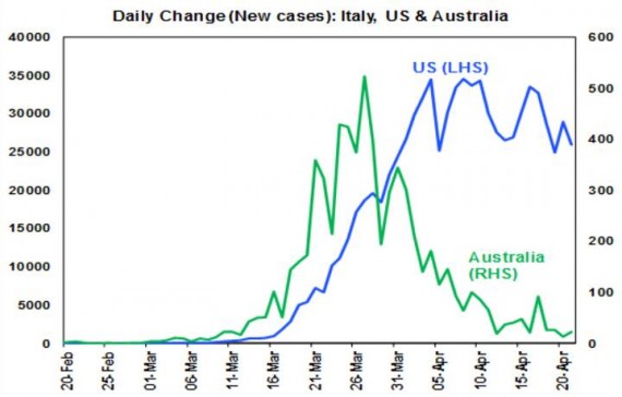 • While Australia’s PM Scott Morrison has indicated that current restrictions will remain broadly in place for another few weeks, he has indicated three criteria for an easing in restrictions: better testing; better contact tracing; and confidence in containing outbreaks all of which makes sense given the risks Australia faces coming into winter. Of course, successful anti-virals and/or a vaccine would make it all a lot easier, but we can’t rely on either just yet.