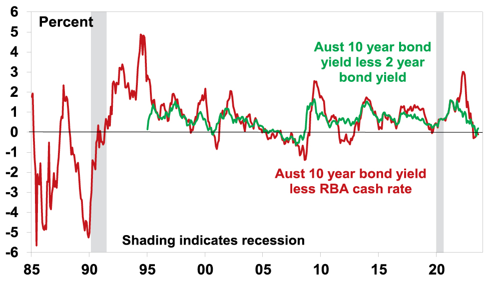 • Inverted yields curves have been a poor indicator of recession since 1991 in Australia and right now it’s not decisively inverted anyway.