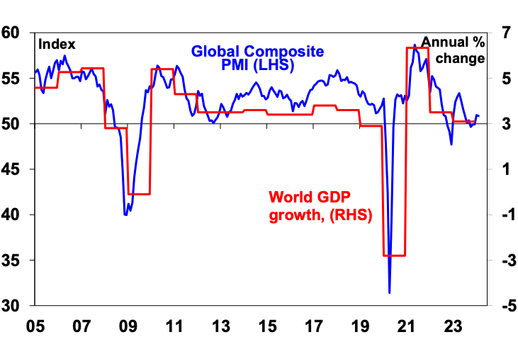 A big driver of how shares perform this year will be whether major economies including Australia slide into recession and, if so, how deep that is. While it’s not our base case we would concede that the risk of a mild recession is still high given the big monetary tightening since 2022 and it’s noteworthy that the UK and Japan have already fallen into a technical recession with Europe stagnating. But even if the US and Australia slide into recession too at least a deep recession should be avoided as we have not seen the sort of spending excesses that often precede deep recessions. Global business conditions indexes (PMIs) – which are surveys of purchasing managers at businesses – will be a key warning indicator.