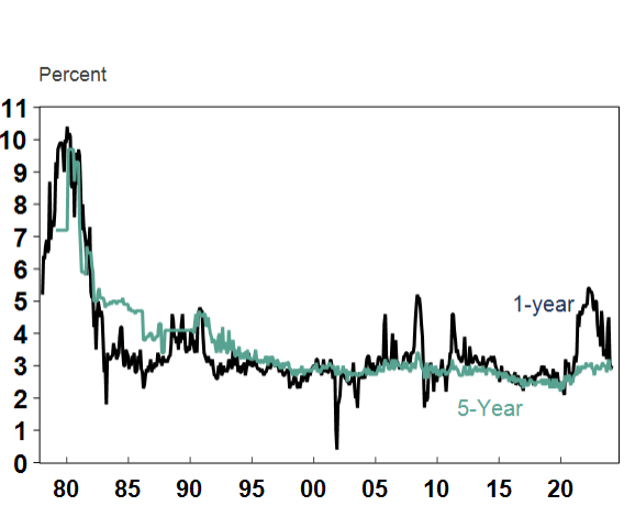 The 1970s tells us the longer inflation stays high, the more businesses, workers and consumers expect it to stay high and then they behave in ways which perpetuate it – in terms of wage claims, price setting and tolerance for price rises. The good news is that short term inflation expectations have fallen sharply, and longer-term inflation expectations remain low. This is very different from 1980 when US inflation expectations were around 10% and deep recession was required to get inflation back down.