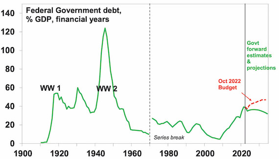 This Budget like all of those since 2020 has benefitted from huge revenue flows coming from a combination of higher personal tax collections due to stronger jobs and wages growth, higher commodity prices and higher non-mining profits than assumed. It looks like “rivers of gold” flowing to Canberra, but it’s really good luck flowing from conservative forecasts regarding jobs, wages, inflation and commodity prices. This windfall (see the line called “parameter changes” in the next table) is estimated to reduce the deficit this financial year by $42bn compared to last October’s forecast, with carry over to next year before slowing as unemployment rises. Some of the windfall has been spent (see the line called “new stimulus”) but 86% of it out to 2026-27 has been saved. As a result, the budget is now projected to be in surplus for this year – its first since 2007-08, a massive turnaround from the $99bn deficit projected less than 18 months ago and the fastest improvement as a share of GDP since the end of WW2 when the deficit went from 10.5% of GDP in 1944-45 to 0.8% in 1946-47. While there is net new stimulus going forward (mainly in 2024-25) due to the cost-of-living measures it turns negative by 2026-27 (as Budget savings kick in) and over the next four years is swamped by the revenue windfall resulting in lower budget deficits going forward.