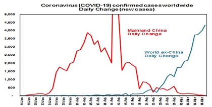 • Alternatively, at some point authorities outside China may just conclude that containment is impossible and, as the death rate is not apocalyptic, shift from containment to just treating those who get very sick. This could enable life to return to normal, albeit with a change in behaviour – less handshaking, frequent handwashing and wearing a mask.