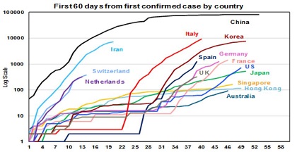 • The actual death rate from Covid-19 may be 1% or lower, rather than the currently reported rate of 3.5% because many of those who get the virus don’t get sick enough to seek medical help and so won’t be included in the case count. The Diamond Princess episode may provide a rough guide – all 3711 passengers and crew have been tested with 705 contracting the virus of which seven have died and most of those are believed to have been over 70. This would suggest a death rate of around 1% which is only just above that for regular flu for those over 65.