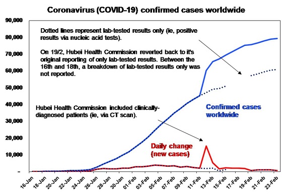 Containment measures in China have been aggressive and if the declining number of new cases in China is correct maybe they are working. Australia’s quick toughening in entry and quarantine conditions may also have helped in contrast to other countries that now have many more cases. However, some governments may not be able to implement and enforce such tough measures.