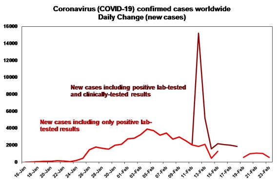 First, while the total number of reported cases is now around 80,000 worldwide there has been some good news in that the daily number of new cases is down from its peak earlier in February. This is due to a sharp fall in the reported number of new cases in China. This has been confused by definitional changes in China – with Hubei initially reporting lab confirmed results, then including clinically tested results, then reverting to lab tested results only. However, both approaches have issues & even if it’s roughly right it’s good news if China is starting to get the outbreak under control.