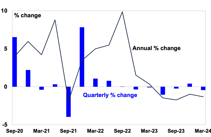 The risk for interest rates in the next few meetings is still skewed to the upside, particularly if inflation comes on the high side again. However, with the economy weak, the labour market cooling and inflation likely to keep slowing, our base case is for the RBA to remain on hold ahead of rate cuts starting in November or December. We now only expect one rate cut this year (taking the cash rate to 4.1%) and are allowing for two cuts next year, Key to watch will be monthly inflation data, the upcoming FWC decision regarding award wages, unemployment and household spending.
