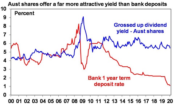 Fifth, while shares have fallen, dividends from the market haven’t. They will come under some pressure as the economy and profits take a hit from a deeper and longer coronavirus outbreak. But companies like to smooth their dividends over time – they never go up as much as earnings in the good times and so rarely fall as much in the bad times. So, the income flow you are receiving from a well-diversified portfolio of shares is likely to remain attractive, particularly against bank deposits.